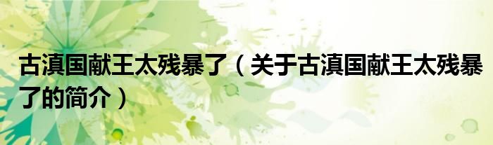 本文關于古滇國獻王太殘暴了的簡介就講解完畢,希望對大家有所幫助。
