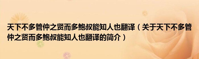 本文關(guān)于天下不多管仲之賢而多鮑叔能知人也翻譯的簡(jiǎn)介就講解完畢,希望對(duì)大家有所幫助。