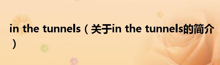 本文關于in the tunnels的簡介就講解完畢,希望對大家有所幫助。