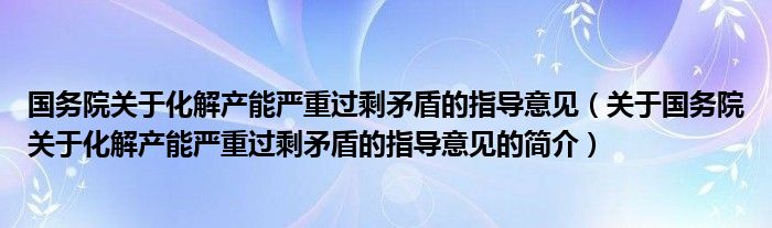 本文關于國務院關于化解產(chǎn)能嚴重過剩矛盾的指導意見的簡介就講解完畢,希望對大家有所幫助。
