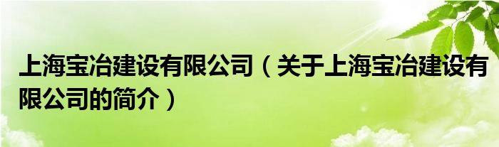 本文關于上海寶冶建設有限公司的簡介就講解完畢,希望對大家有所幫助。