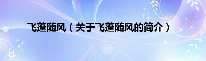本文關于飛蓬隨風的簡介就講解完畢,希望對大家有所幫助。