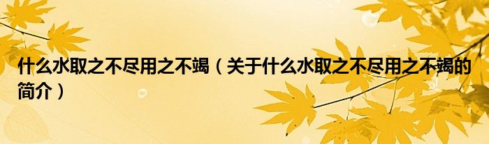 本文關于什么水取之不盡用之不竭的簡介就講解完畢,希望對大家有所幫助。