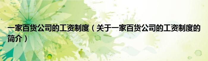 大家好,一家百貨公司的工資制度,關于一家百貨公司的工資制度的簡介很多人還不知道,現在讓我們一起來看看吧!