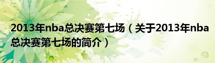 大家好,2013年nba總決賽第七場,關于2013年nba總決賽第七場的簡介很多人還不知道,現在讓我們一起來看看吧!