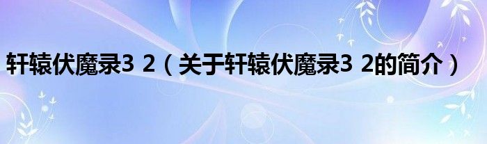 本文關于軒轅伏魔錄3 2的簡介就講解完畢,希望對大家有所幫助。