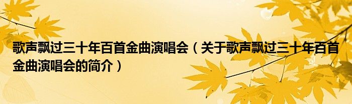 本文關于歌聲飄過三十年百首金曲演唱會的簡介就講解完畢,希望對大家有所幫助。
