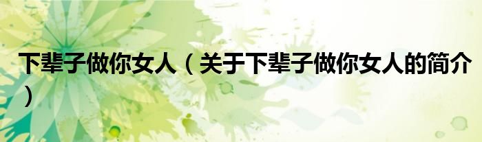 本文關于下輩子做你女人的簡介就講解完畢,希望對大家有所幫助。
