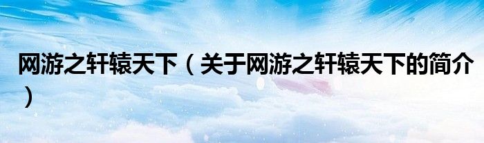 本文關于網游之軒轅天下的簡介就講解完畢,希望對大家有所幫助。