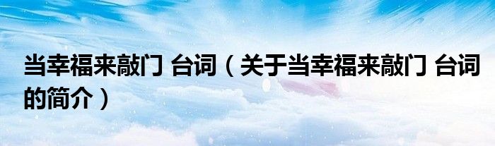 大家好,當幸福來敲門 臺詞,關于當幸福來敲門 臺詞的簡介很多人還不知道,現在讓我們一起來看看吧!