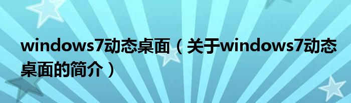 大家好,windows7動態桌面,關于windows7動態桌面的簡介很多人還不知道,現在讓我們一起來看看吧!