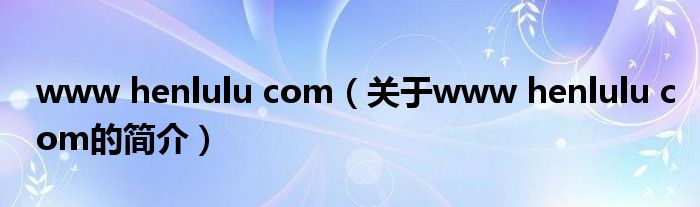 大家好,www henlulu com,關(guān)于www henlulu com的簡(jiǎn)介很多人還不知道,現(xiàn)在讓我們一起來(lái)看看吧!