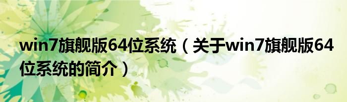 大家好,win7旗艦版64位系統,關于win7旗艦版64位系統的簡介很多人還不知道,現在讓我們一起來看看吧!