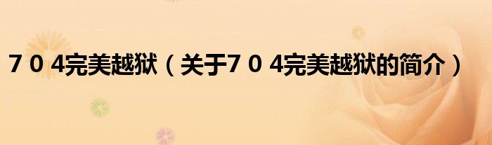 本文關(guān)于7 0 4完美越獄的簡(jiǎn)介就講解完畢,希望對(duì)大家有所幫助。
