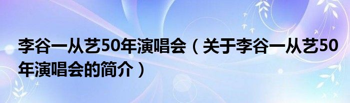 本文關于李谷一從藝50年演唱會的簡介就講解完畢,希望對大家有所幫助。