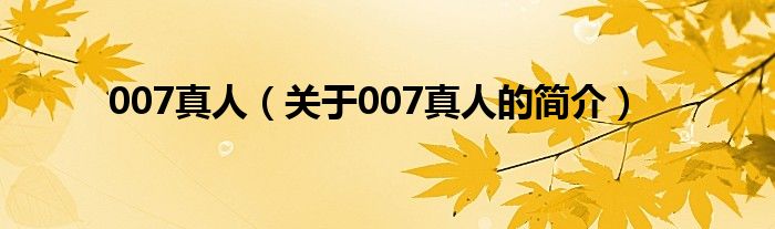 本文關于007真人的簡介就講解完畢,希望對大家有所幫助。