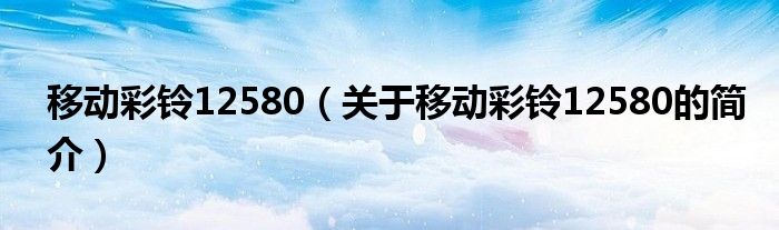 本文關于移動彩鈴12580的簡介就講解完畢,希望對大家有所幫助。