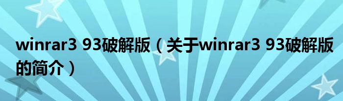 本文關于winrar3 93破解版的簡介就講解完畢,希望對大家有所幫助。