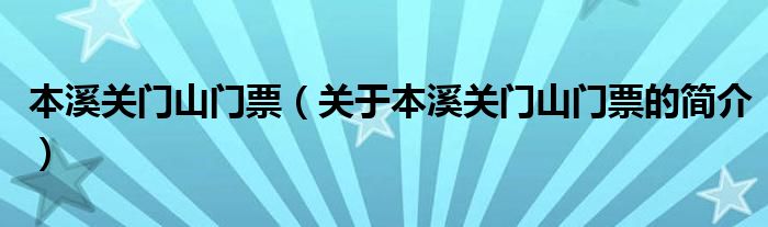 本文關于本溪關門山門票的簡介就講解完畢,希望對大家有所幫助。