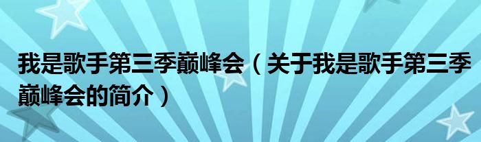 本文關于我是歌手第三季巔峰會的簡介就講解完畢,希望對大家有所幫助。