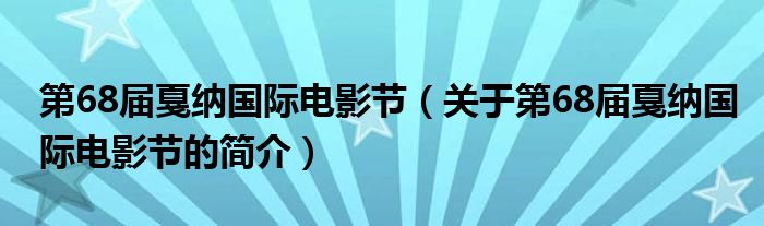 大家好,第68屆戛納國際電影節,關于第68屆戛納國際電影節的簡介很多人還不知道,現在讓我們一起來看看吧!