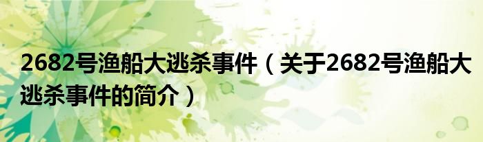 本文關于2682號漁船大逃殺事件的簡介就講解完畢,希望對大家有所幫助。