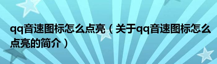 本文關于qq音速圖標怎么點亮的簡介就講解完畢,希望對大家有所幫助。