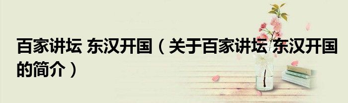 本文關于百家講壇 東漢開國的簡介就講解完畢,希望對大家有所幫助。