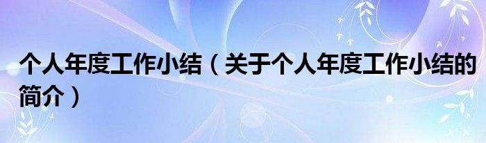 本文關于個人年度工作小結的簡介就講解完畢,希望對大家有所幫助。
