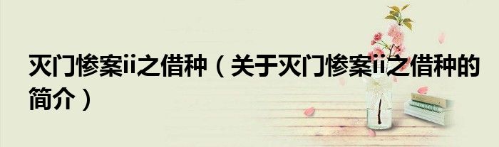 本文關(guān)于滅門慘案ii之借種的簡(jiǎn)介就講解完畢,希望對(duì)大家有所幫助。