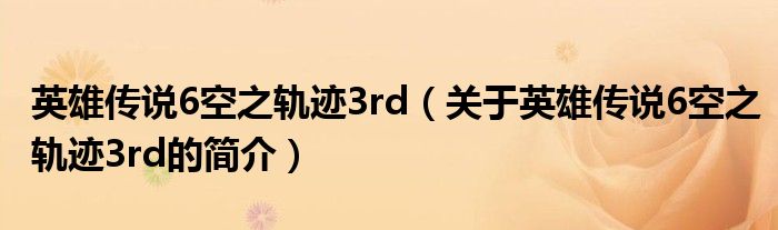 本文關于英雄傳說6空之軌跡3rd的簡介就講解完畢,希望對大家有所幫助。