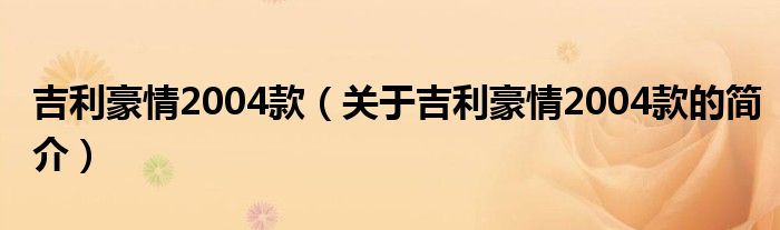 本文關于吉利豪情2004款的簡介就講解完畢,希望對大家有所幫助。