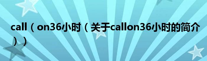 本文關于call on 36小時的簡介就講解完畢,希望對大家有所幫助。