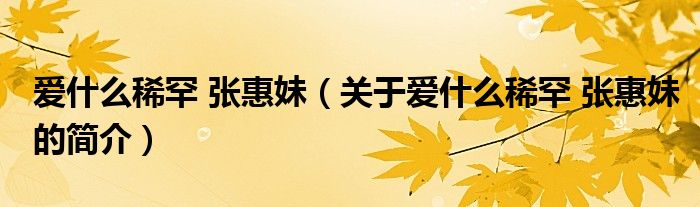 大家好,愛什么稀罕 張惠妹,關于愛什么稀罕 張惠妹的簡介很多人還不知道,現在讓我們一起來看看吧!