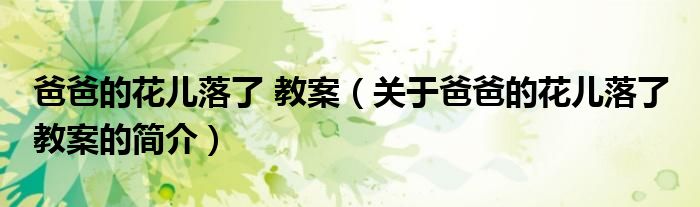 本文關(guān)于爸爸的花兒落了 教案的簡介就講解完畢,希望對大家有所幫助。