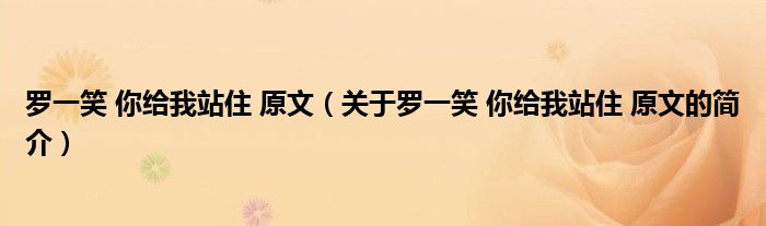 大家好,羅一笑 你給我站住 原文,關(guān)于羅一笑 你給我站住 原文的簡介很多人還不知道,現(xiàn)在讓我們一起來看看吧!