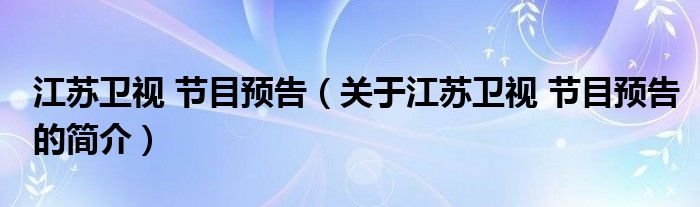 本文關(guān)于江蘇衛(wèi)視 節(jié)目預(yù)告的簡介就講解完畢,希望對大家有所幫助。