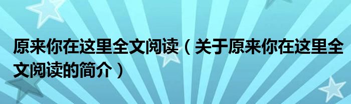 本文關于原來你在這里全文閱讀的簡介就講解完畢,希望對大家有所幫助。