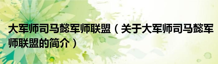 本文關于大軍師司馬懿軍師聯盟的簡介就講解完畢,希望對大家有所幫助。