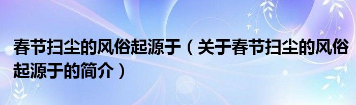 本文關于春節掃塵的風俗起源于的簡介就講解完畢,希望對大家有所幫助。