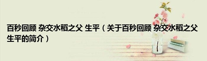大家好,百秒回顧 雜交水稻之父 生平,關于百秒回顧 雜交水稻之父 生平的簡介很多人還不知道,現在讓我們一起來看看吧!