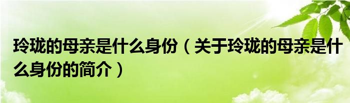 本文關(guān)于玲瓏的母親是什么身份的簡介就講解完畢,希望對大家有所幫助。