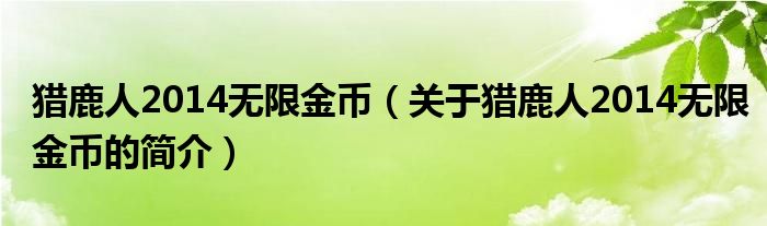 本文關于獵鹿人2014無限金幣的簡介就講解完畢,希望對大家有所幫助。