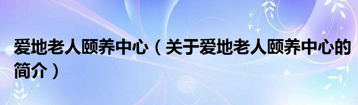 大家好,愛地老人頤養中心,關于愛地老人頤養中心的簡介很多人還不知道,現在讓我們一起來看看吧!