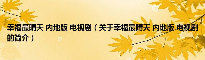 本文關(guān)于幸福最晴天 內(nèi)地版 電視劇的簡介就講解完畢,希望對大家有所幫助。
