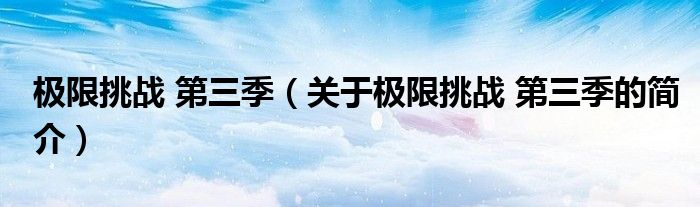 大家好,極限挑戰(zhàn) 第三季,關(guān)于極限挑戰(zhàn) 第三季的簡介很多人還不知道,現(xiàn)在讓我們一起來看看吧!
