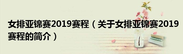 本文關于女排亞錦賽2019賽程的簡介就講解完畢,希望對大家有所幫助。