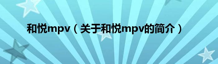 大家好,和悅mpv,關于和悅mpv的簡介很多人還不知道,現在讓我們一起來看看吧!