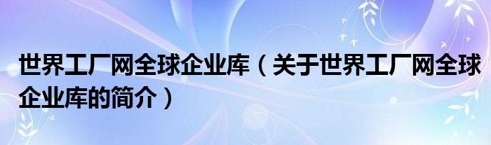 本文關于世界工廠網全球企業庫的簡介就講解完畢,希望對大家有所幫助。