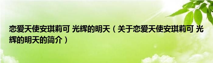 本文關于戀愛天使安琪莉可 光輝的明天的簡介就講解完畢,希望對大家有所幫助。